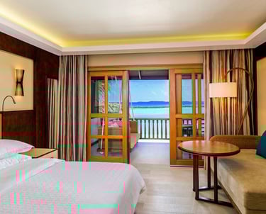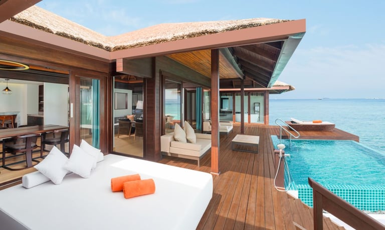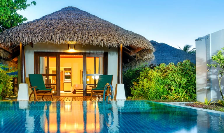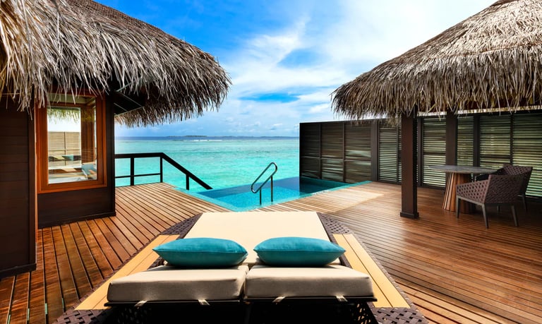 Nestled on its own private island, just a scenic 15-minute speedboat ride from Velana International Airport, Sheraton Maldives Full Moon Resort & Spa invites you to discover an idyllic sanctuary. This luxurious haven seamlessly blends pristine white-sand beaches with crystal-clear turquoise lagoons and lush tropical foliage. Indulge in exquisite dining experiences, rejuvenate at the Shine Spa for Sheraton, and explore vibrant house reefs teeming with marine life. Whether seeking adventure or pure relaxation, this resort promises an unforgettable escape, crafted with exceptional service and the signature warmth of Maldivian hospitality.