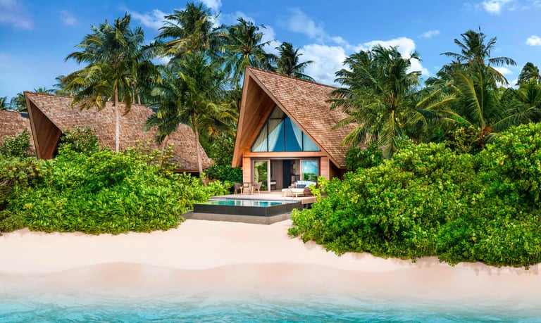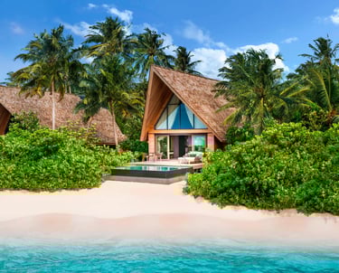 The St. Regis Maldives Vommuli Resort is a secluded luxury retreat set on a private island in Dhaalu Atoll. Surrounded by lush tropical gardens and turquoise waters, it offers 77 lavish villas, six exquisite dining venues, and the renowned Iridium Spa. With signature St. Regis Butler Service, it’s an oasis of elegance and indulgence.