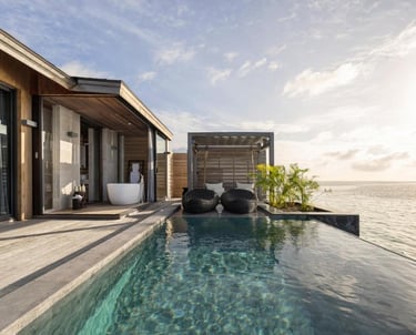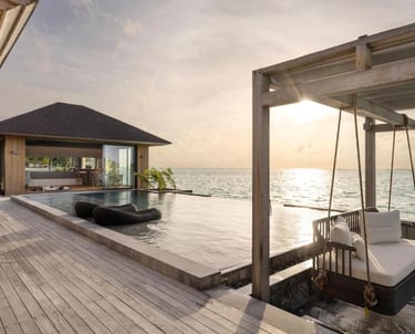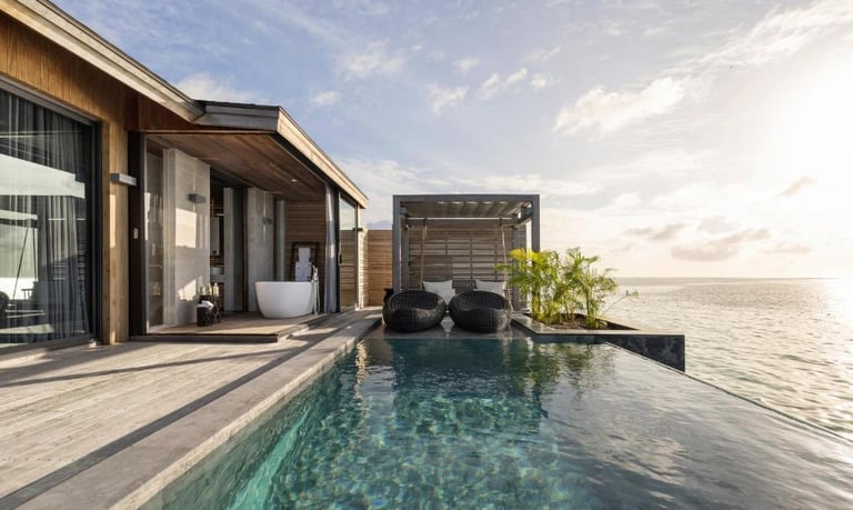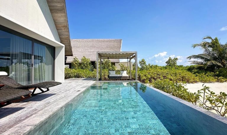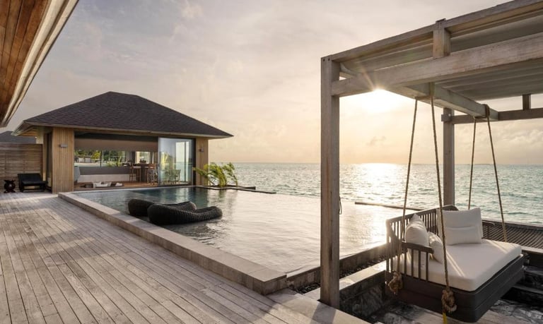 Surrounded by the untouched beauty of the Maldives, Madifushi Private Island is a serene coastal retreat designed for pure relaxation. This nature-centric paradise boasts crystal-clear waters, lush seagrasses, and vibrant coral reefs, creating an idyllic escape. Guests can unwind in luxurious beachfront and overwater villas, indulge in exquisite dining, and rejuvenate at the Mandara Spa.
