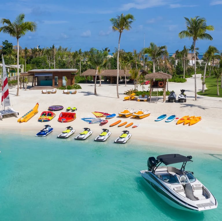 At Waldorf Astoria Maldives Ithaafushi, experiences are curated on a grand scale, offering both vibrant energy and refined seclusion. Guests can explore pristine reefs through snorkeling and diving, or enjoy an extensive range of water sports including jet skiing, paddleboarding, kayaking, and sailing. The resort’s private yacht experiences, sunset cruises, dolphin excursions, and exclusive sandbank picnics add a bespoke dimension to island life. On land, guests can enjoy tennis courts, beach activities, cycling trails, and thoughtfully designed programs for families and younger guests—ensuring every moment is tailored to individual preferences.